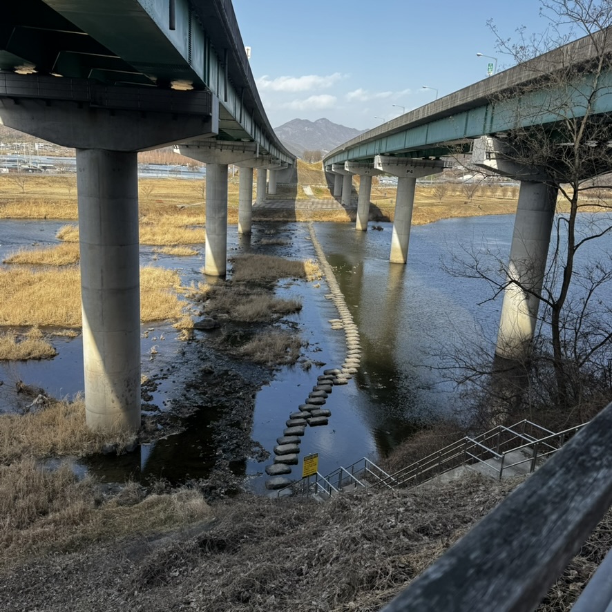 다시 데크길을 따라 내려와서 수변 산책길을 따라 걸어 만난 징검다리